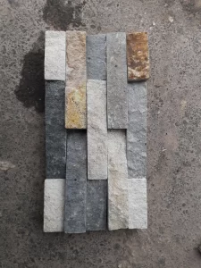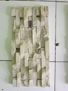 Batu yang dalam proses pembuatannya melalui kerajinan tangan dengan cara dirakit lalu di LEM dengan campuran bubuk. Batu tersebut tersusun dari tiga jenis batu alam yang berbeda. Contoh tiga batu alam tersebut yaitu yang berwarna hitam adalah Batu Alam Andesit, yang berwarna putih adalah Batu Alam Palem Putih, dan yang berwarna merah adalah batu Alam Merah Cupang. Setiap tile terdiri dari kumpulan batu dengan warna serupa, ada pula yang berisi kumpulan batu beragam warna.