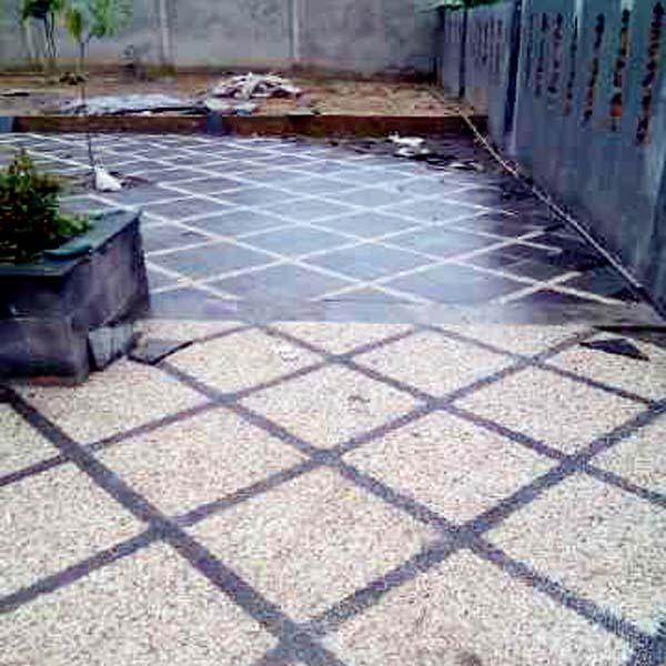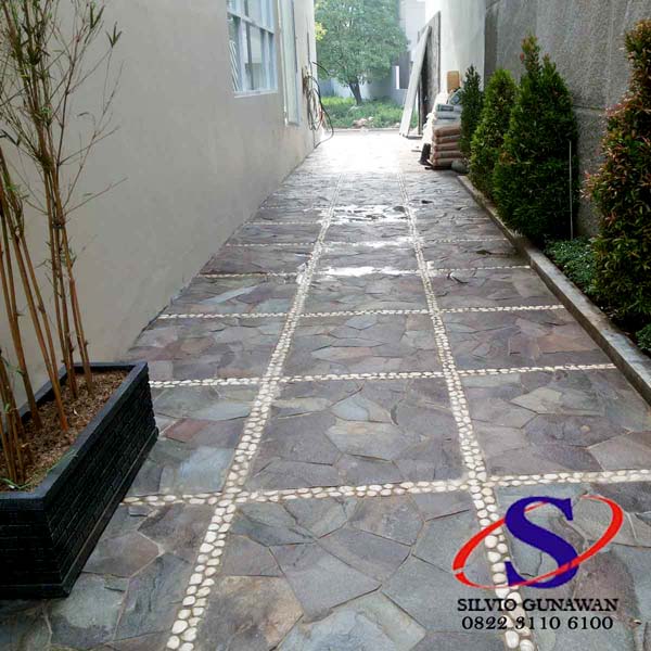 Berbagai macam design lantai carport dengan menggunakan batu alam, diantara lain: Batu Alam Andesit, Batu Koral Sikat, Batu Alam Templek, dll.